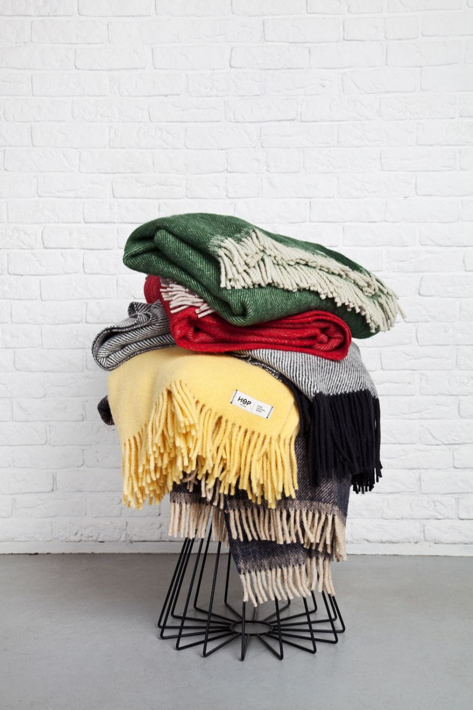 Wełna do produkcji koców HOP DESIGN pochodzi z Nowej Zelandii, a sukno przygotowywane jest w Polsce.
