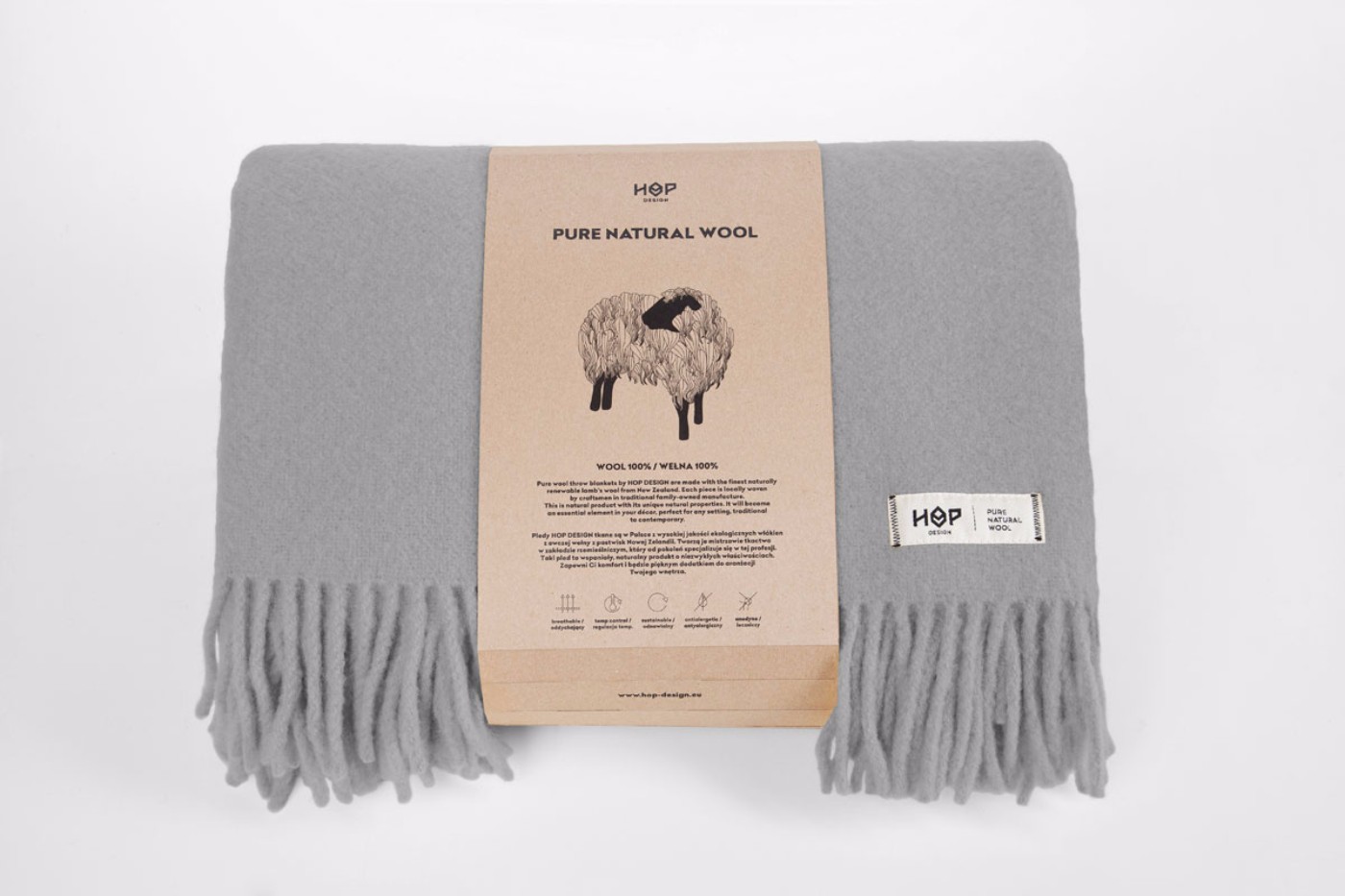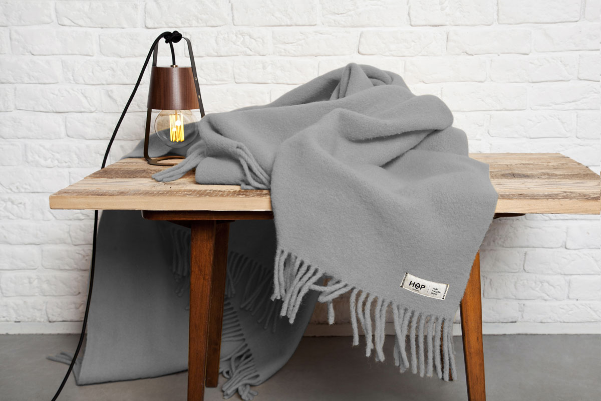 Wełna do produkcji koców HOP DESIGN pochodzi z Nowej Zelandii, a sukno przygotowywane jest w Polsce.