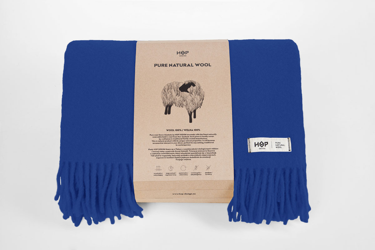 Wełna do produkcji koców HOP DESIGN pochodzi z Nowej Zelandii, a sukno przygotowywane jest w Polsce.