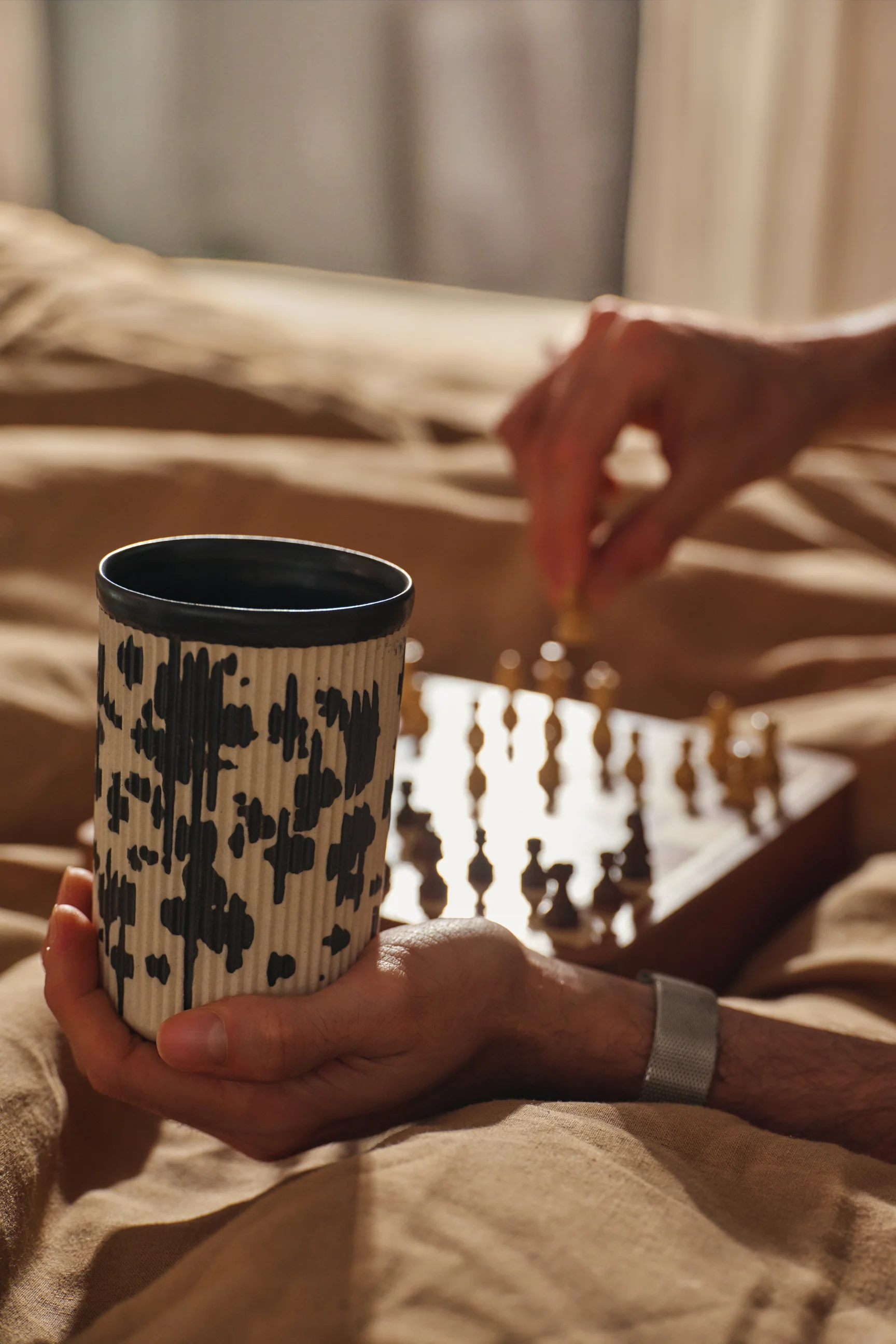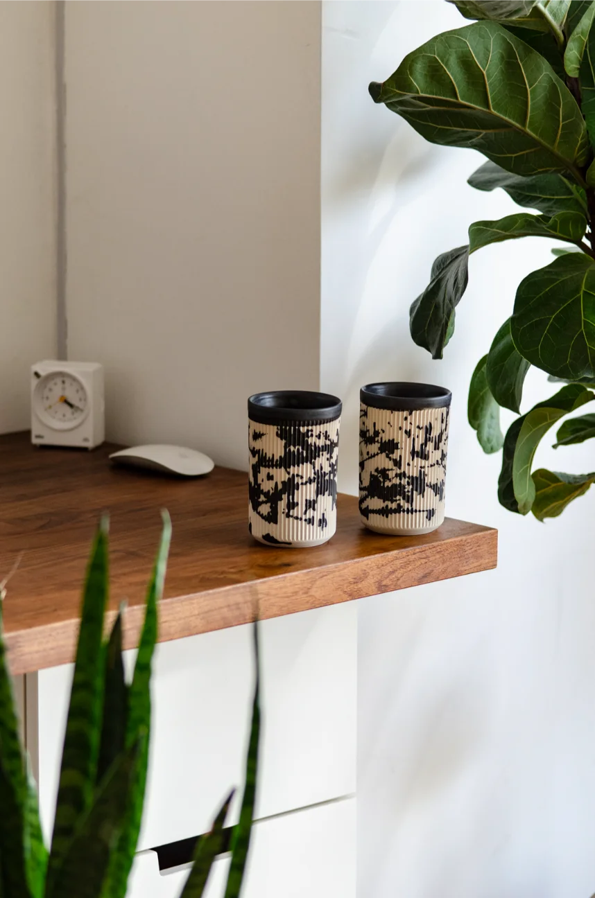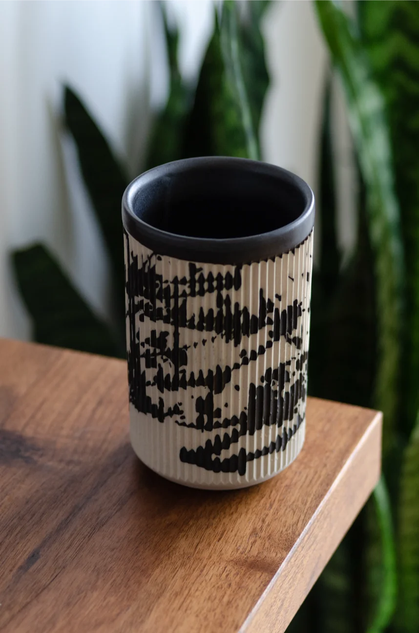 Czarki Róg to wyjątkowy projekt, za którym stoi koncept stworzenia kubka bez ucha, który zachowa najważniejszą funkcję tego naczynia: nie będzie parzył dłoni przy przenoszeniu. Na bazie tych założeń powstał Róg, który dzięki 66 pionowym żłobieniom nie przenosi temperatury na naszą dłoń. Paski pełnią również funkcję dekoracyjną, a w przypadku modeli ze wzorem czarka zmienia swoje oblicze za każdym razem gdy ją obrócimy.. Kubki są wykonane z kamionki i idealnie nadają się na prezent.